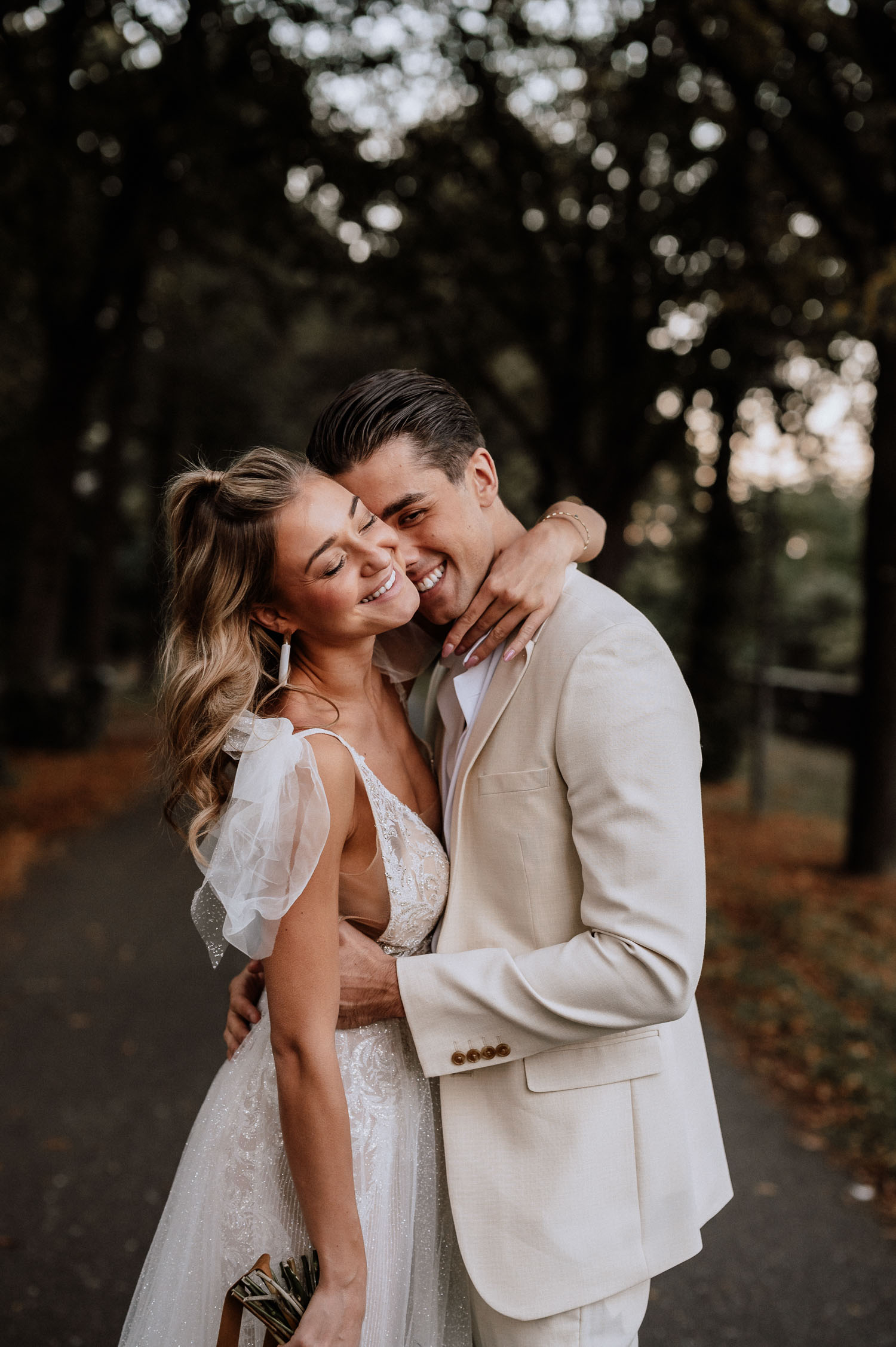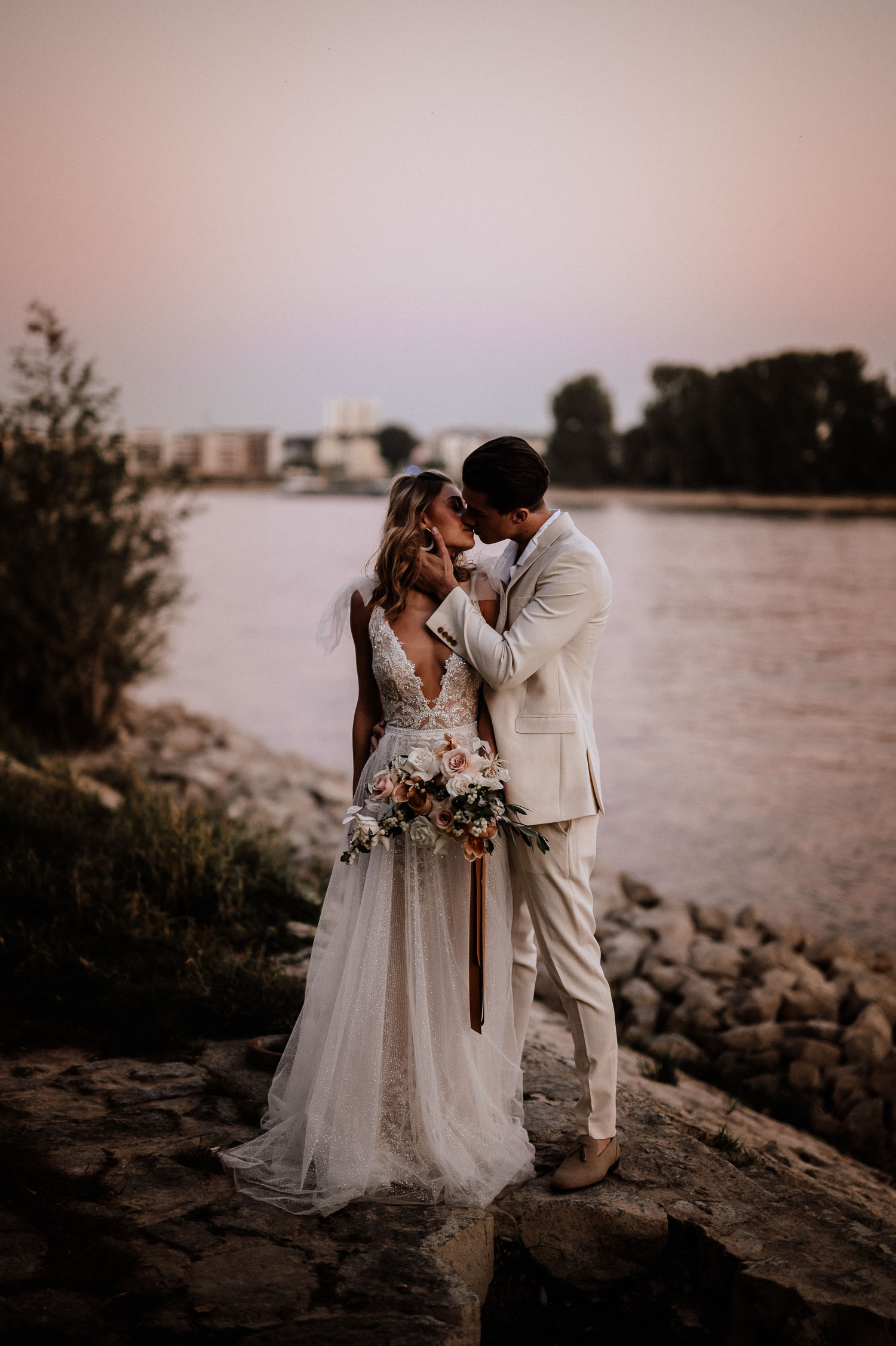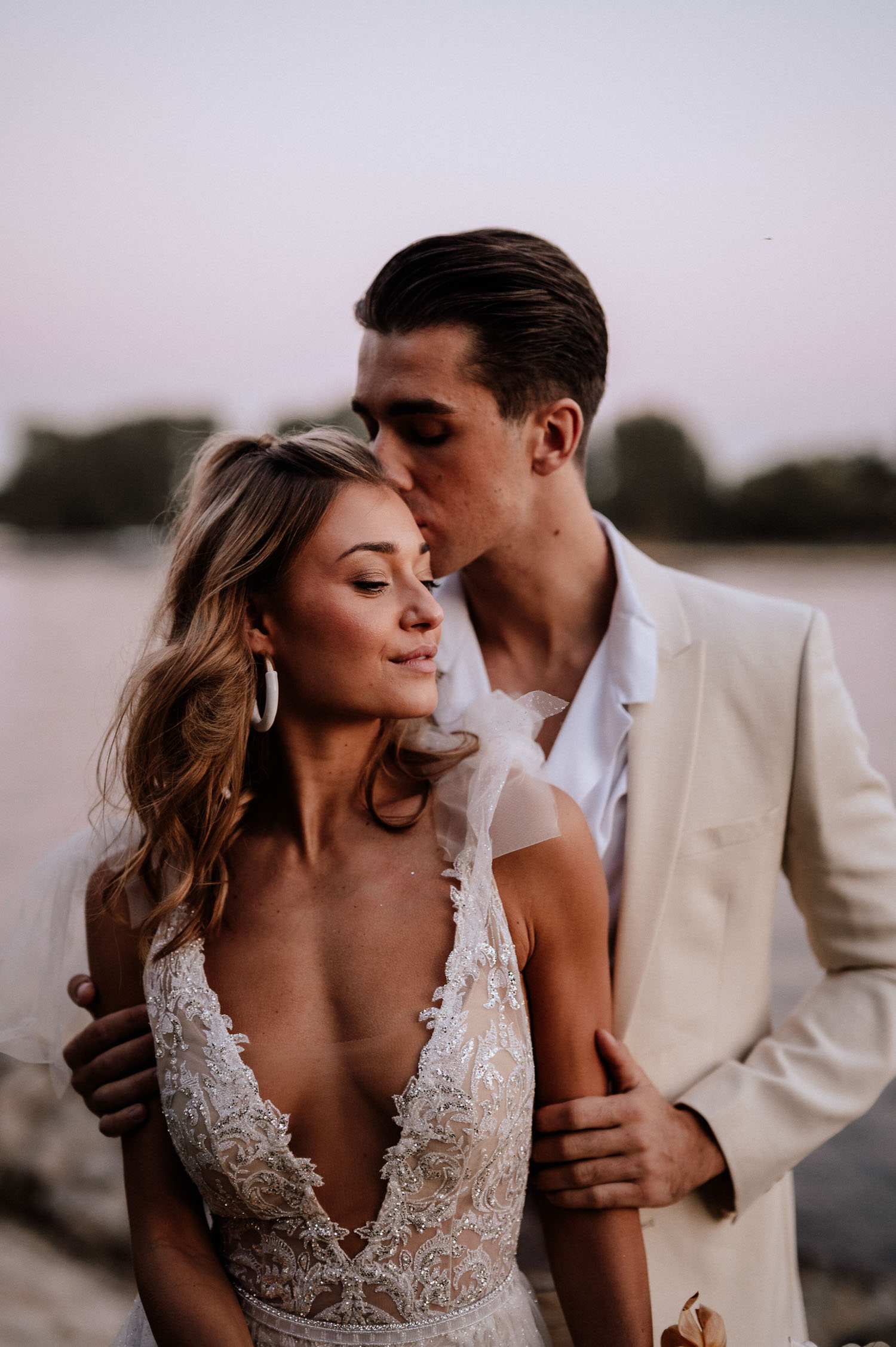 Wann die beste Zeit für das Brautpaar-Shooting ist? Auf jeden Fall dann, wenn es für euch am besten passt und ihr euch rundum wohlfühlt. Das schönste Licht habt ihr allerdings abends. Kurz vor Sonnenuntergang ist das Licht wunderschön warm und bekommt einen goldigen Ton, der der Haut schmeichelt. Deshalb empfehle ich, die Brautpaarfotos im Abendlicht zu machen.