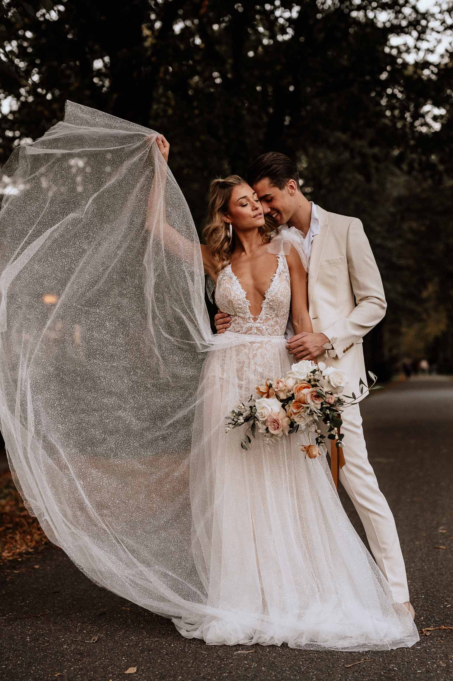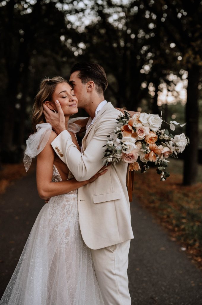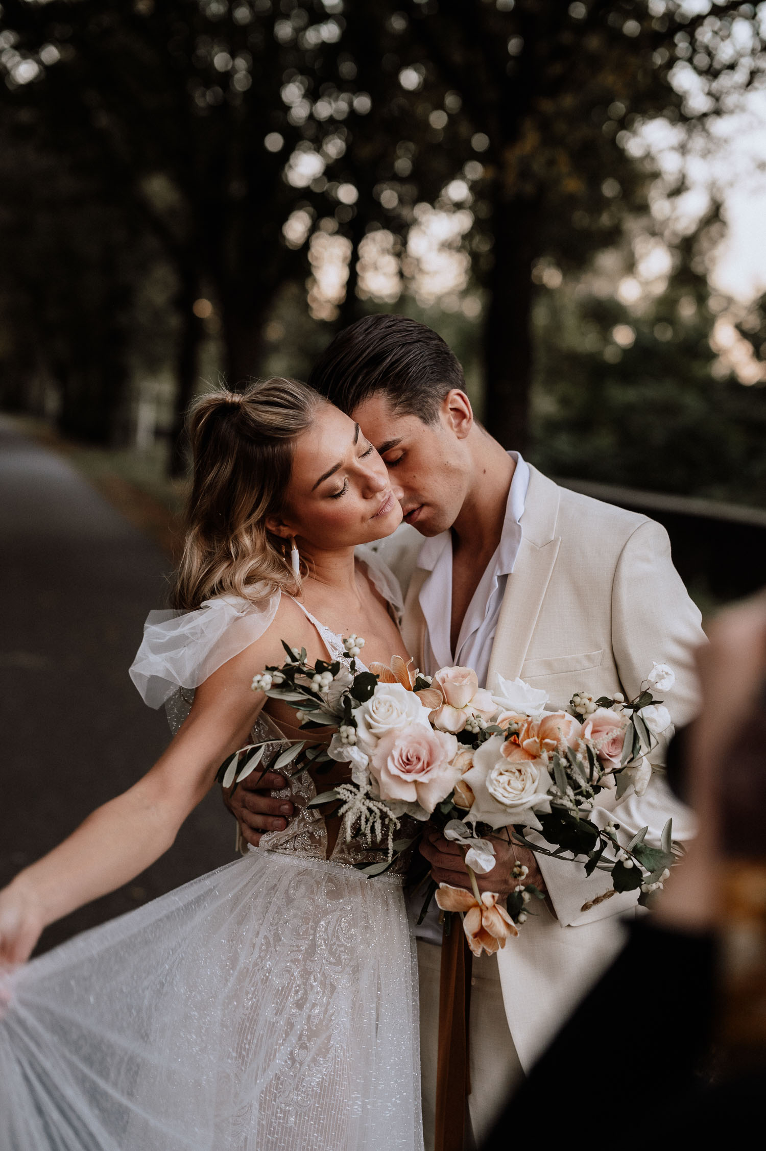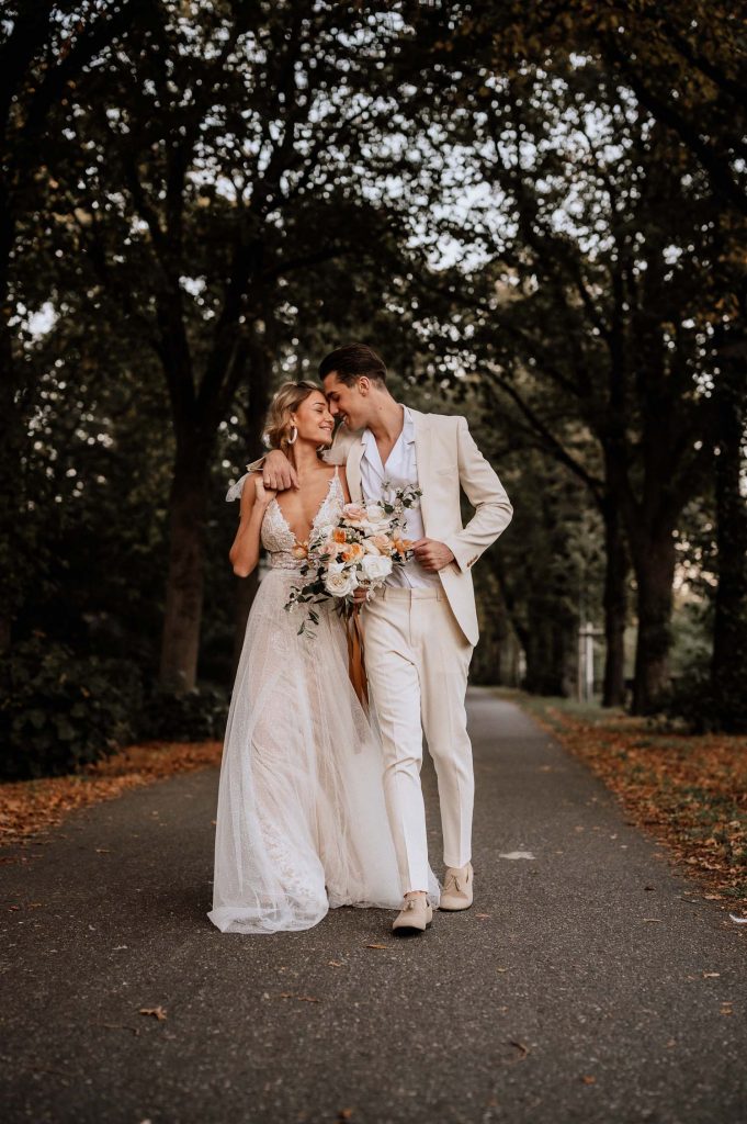 Wann die beste Zeit für das Brautpaar-Shooting ist? Auf jeden Fall dann, wenn es für euch am besten passt und ihr euch rundum wohlfühlt. Das schönste Licht habt ihr allerdings abends. Kurz vor Sonnenuntergang ist das Licht wunderschön warm und bekommt einen goldigen Ton, der der Haut schmeichelt. Deshalb empfehle ich, die Brautpaarfotos im Abendlicht zu machen.